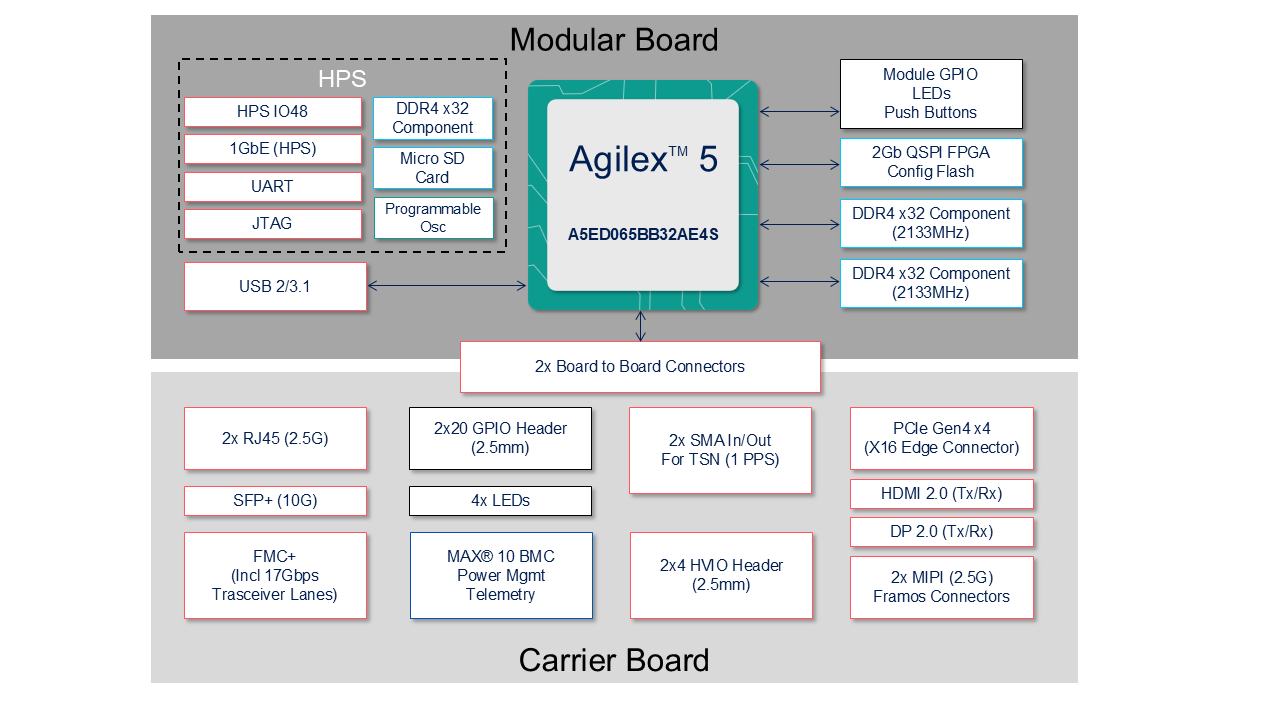 The iG-G58D is a feature-rich development kit designed to evaluate and accelerate designs on Altera® Agilex™ 5 SoMs. It offers robust connectivity with PCIe Gen4 x4, dual Ethernet (2.5G and Gigabit), USB 3.0/2.0 via Type-C, and high-speed expansion through FMC+, PMOD, and QSFP+ connectors. With support for HDMI IN/OUT, SDI IN/OUT, DisplayPort, and comprehensive debug interfaces, the G58D platform is ideal for prototyping AI, vision, and networking applications at the edge.