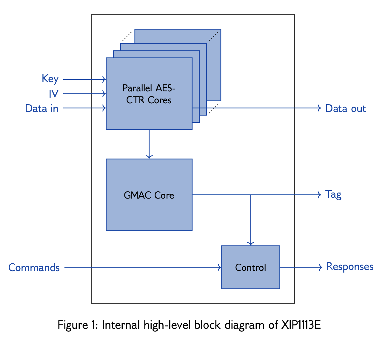 AES-XTS IP cores implement the Advanced Encryption Standard (AES) with a 256-bit key in XTS mode.