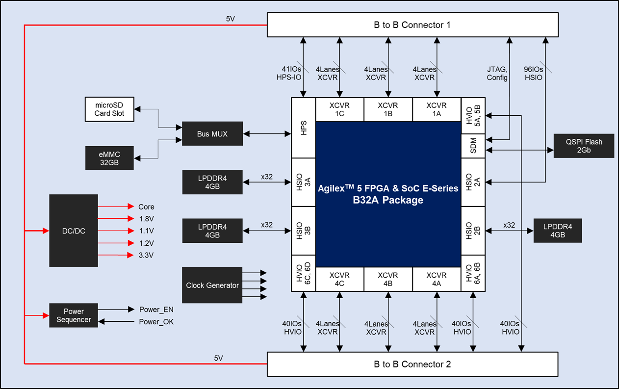DE25-Standard - The newest generation dev. kit for Altera ® University Program!Designed to address the applications requirements for digital logics, embedded systems, and robotics, the DE25-Standard development kit takes advantage of the Altera® Agilex™ 5 SoC FPGA with 138K LEs to deliver 2.5x performance breakthrough and advanced feature sets such as 1GB DDR4 32-bit data bus, 64MB SDRAM, 8-channel ADC header, GPIO header, an HSMC high-speed connector, and black and light mini LCD, etc. A rich set of input and output features, such as robust switches, LEDs, seven-segment displays, and commonly-used I / O interfaces are included to meet the needs of teaching and experiments.