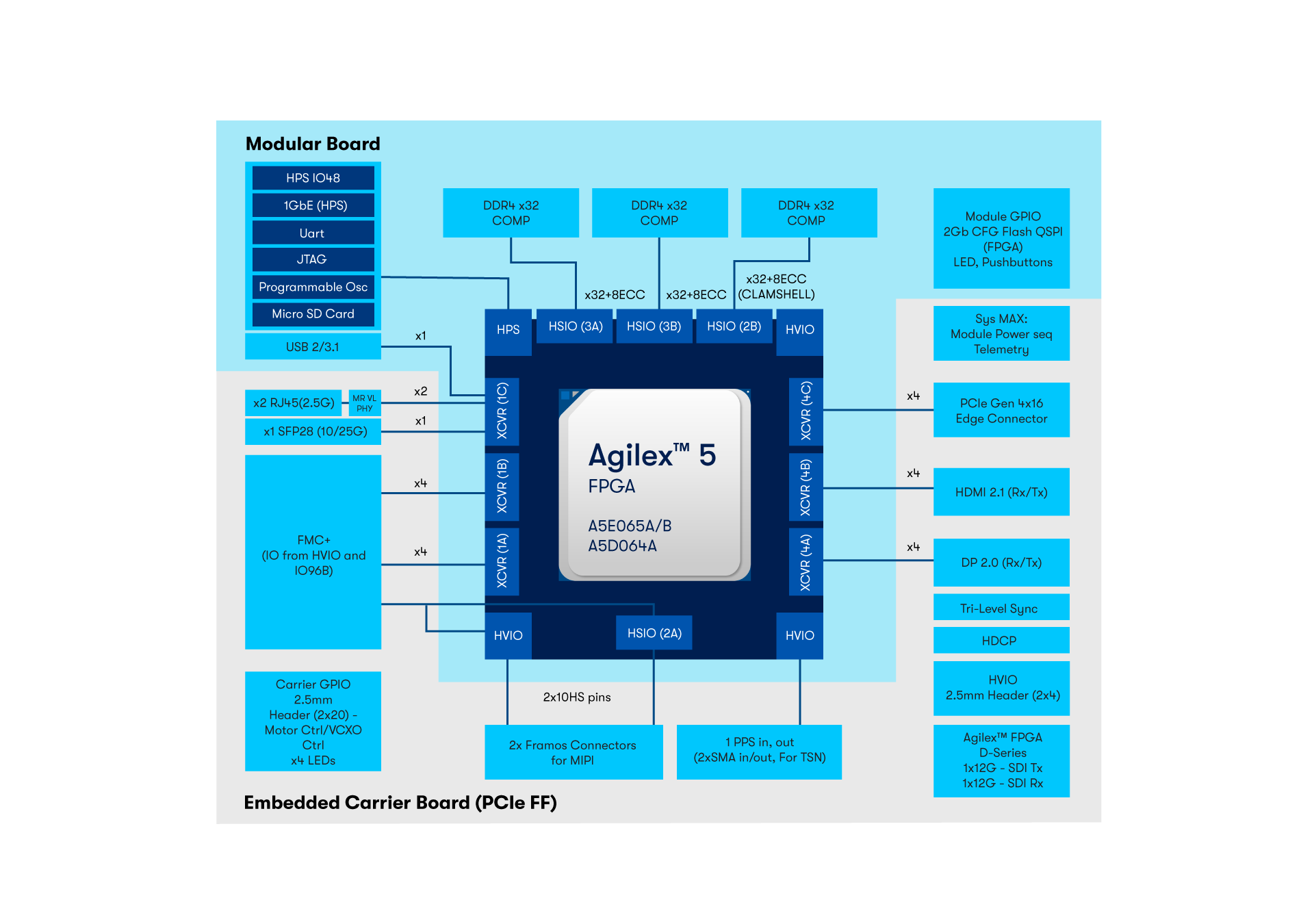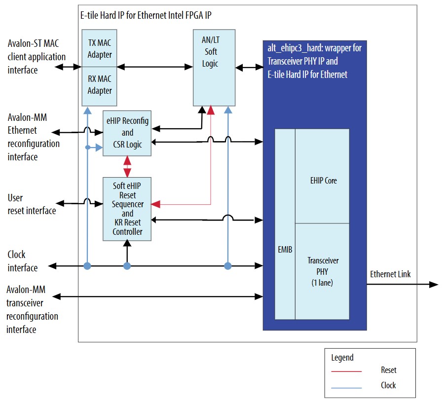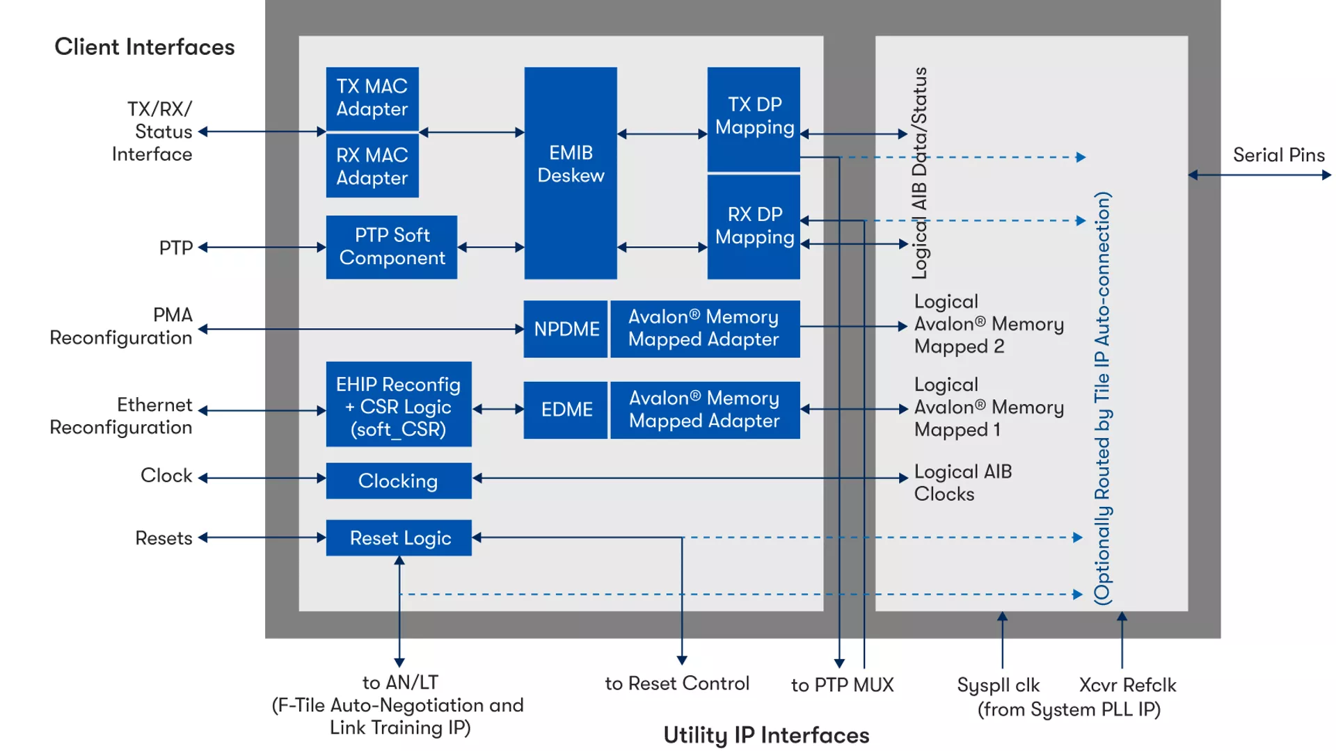 The Agilex 7 FPGA F-Tile IP core implements Ethernet at data rates of 10 Gbps, 25 Gbps, 40 Gbps, 50 Gbps, 100 Gbps, 200 Gbps and 400 Gbps. The user can choose a media access control (MAC) and a physical coding sublayer (PCS) variation, a PCS-only variation, a Flexible Ethernet (FlexE) variation, or an Optical Transport Network (OTN) variation.