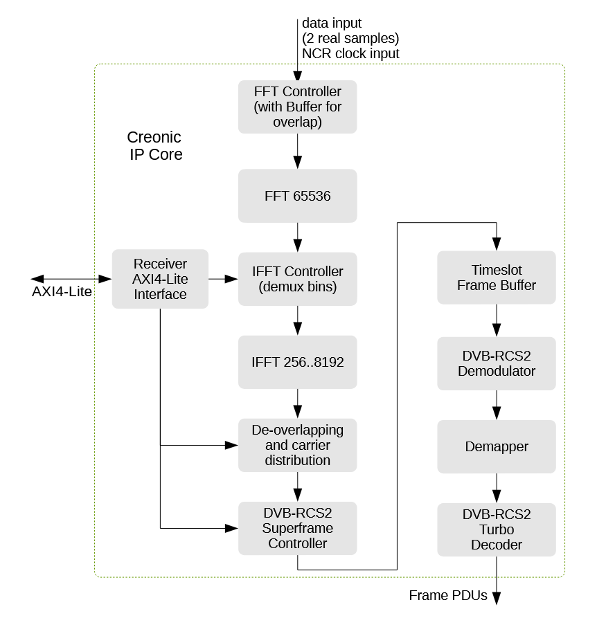 The DVB-S2 (Digital Video Broadcasting - Satellite - Second Generation) IP Core offers a high-performance, fully compliant, and cost-efficient solution for satellite-based communication systems. Designed to implement the ETSI EN 302 307 standard, our DVB-S2 IP Core supports all key features of the specification, including powerful LDPC/BCH Forward Error Correction, adaptive coding and modulation (ACM), and multi-stream transmission—enabling robust and bandwidth-efficient data transmission over satellite links.
