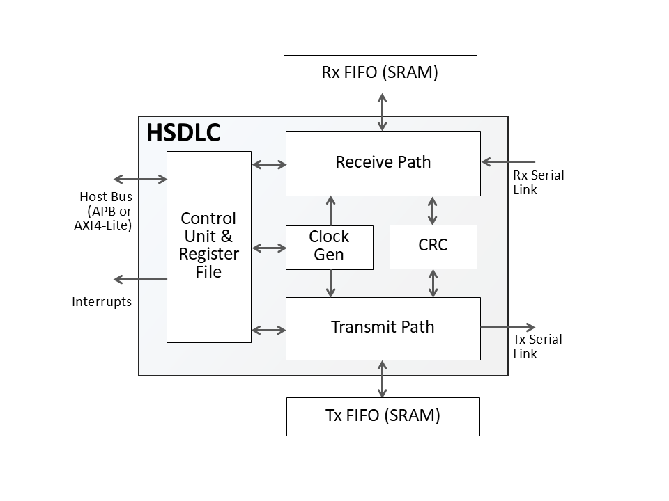 The HSDLC IP core implements HDLC and SDLC protocols, based on the Intel® 8XC152 GSC in SDLC mode with added HDLC and proprietary frame support. It connects as a peripheral to a host processor via APB or 80C51-like interfaces, with full interrupt support for efficient operation. Flexible design allows two independent TX/RX interfaces with support for full- or half-duplex, hardware flow control (RTS/CTS), collision detection, and programmable baud rates. Receive clock is derived from incoming data or supplied externally. Available in Normal and Safety-Enhanced (TMR, DO-254 DAL-A) versions, the HSDLC core is fully synchronous, scan-ready, verified, and delivered in Verilog RTL or FPGA netlist. Deliverables include scripts, testbench, and complete documentation.