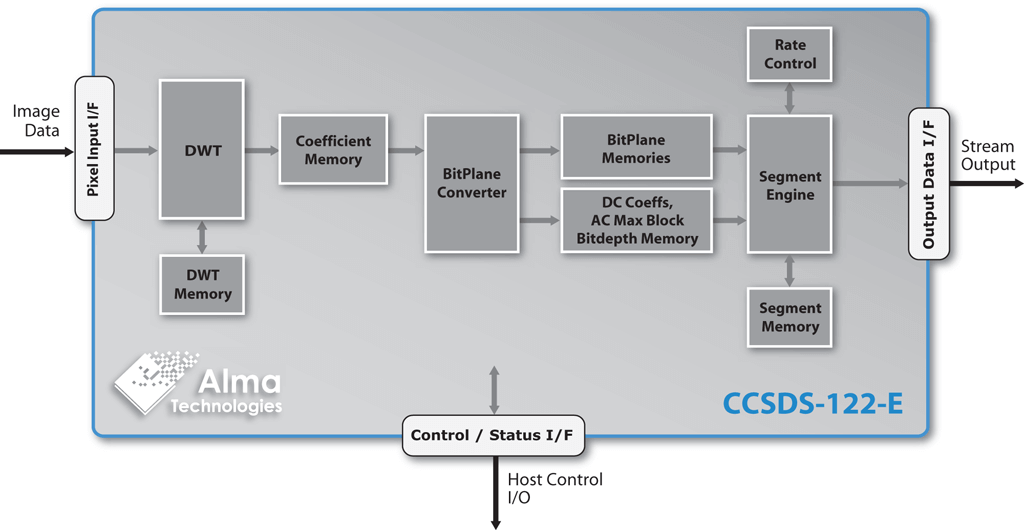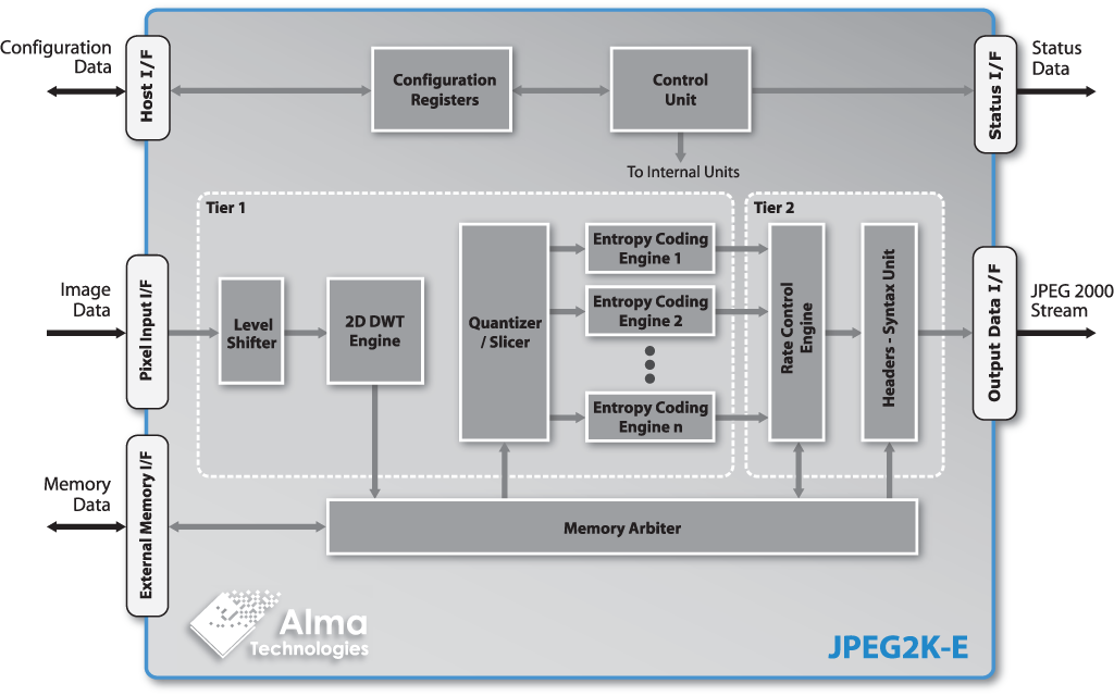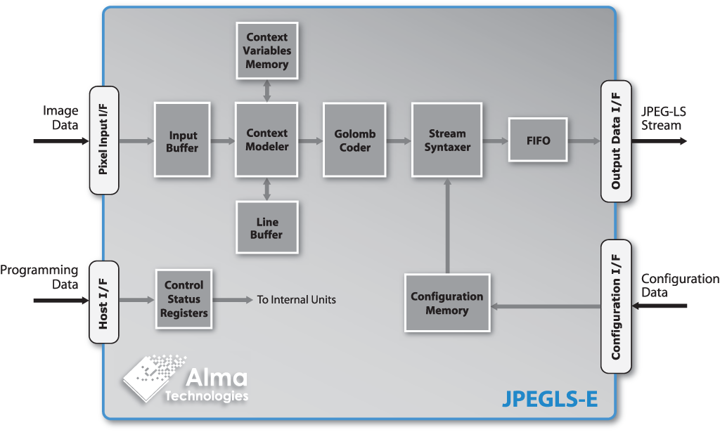 The JPEGLS-E core from Alma Technologies is an ISO/IEC 14495-1 compliant JPEG-LS encoder that offers a very compact, efficient and high-performance solution for up to 16-bit per component numerically lossless image and video data compression.